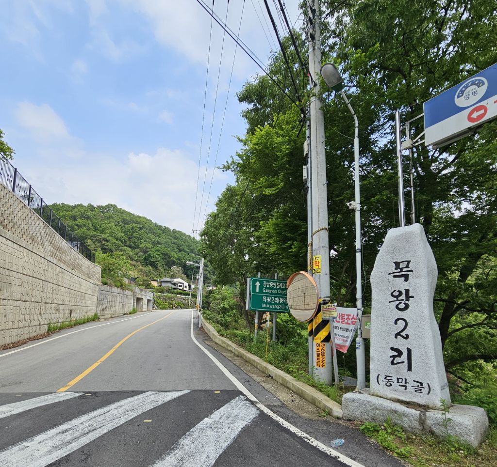 샘골고개에서 내려오다 이정표를 잘 못보고 신원리 마을길로