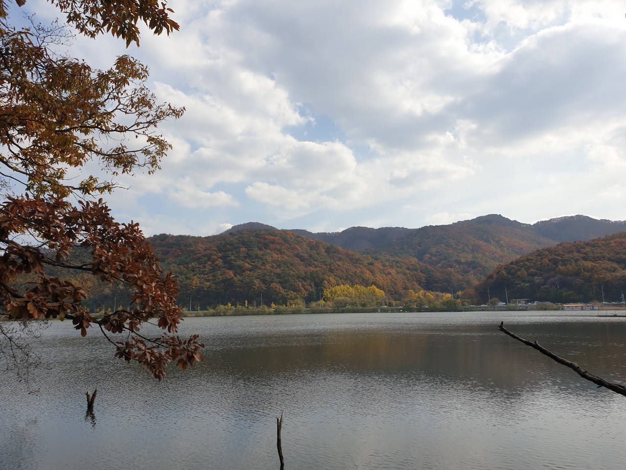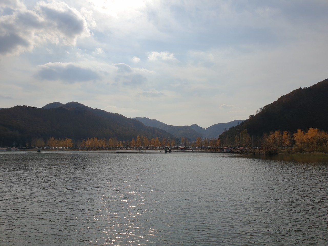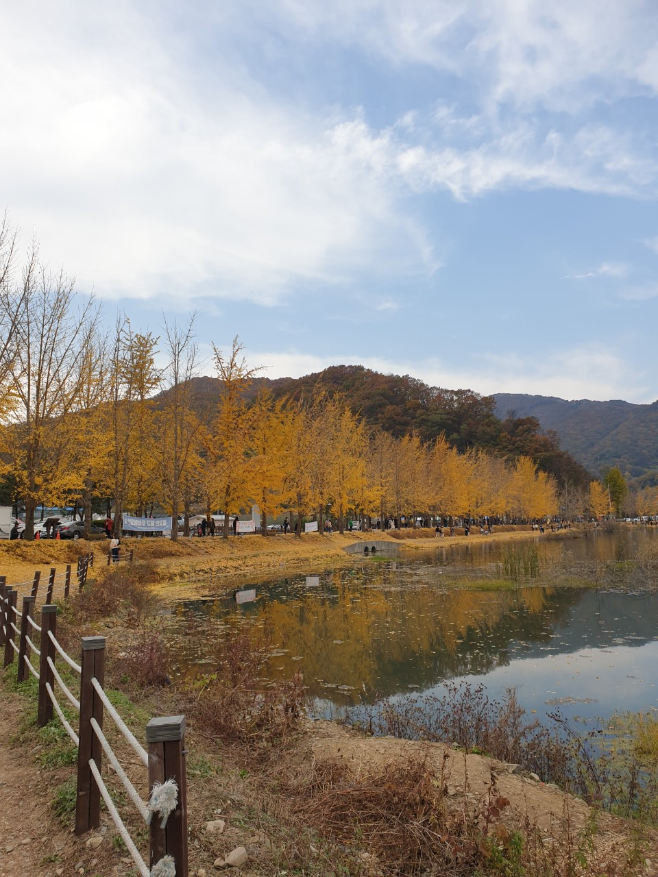 늦은 감은 있지만 그래도 저수지 와 은행나무 길 을 걸으며