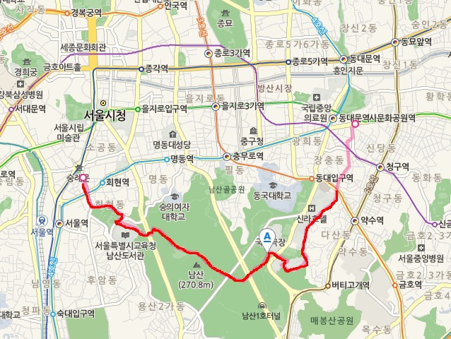 광희문~숭례문까지로 4.8km 3시간 정도 소요되는 거리입니다.
