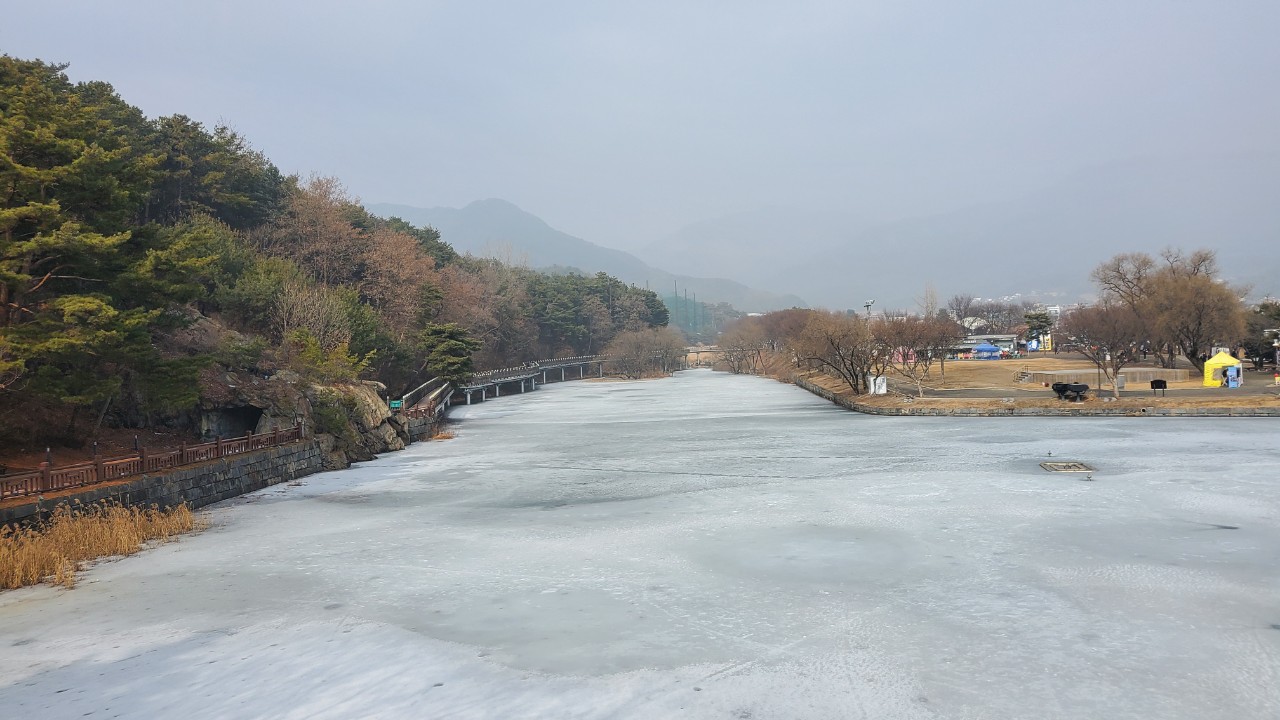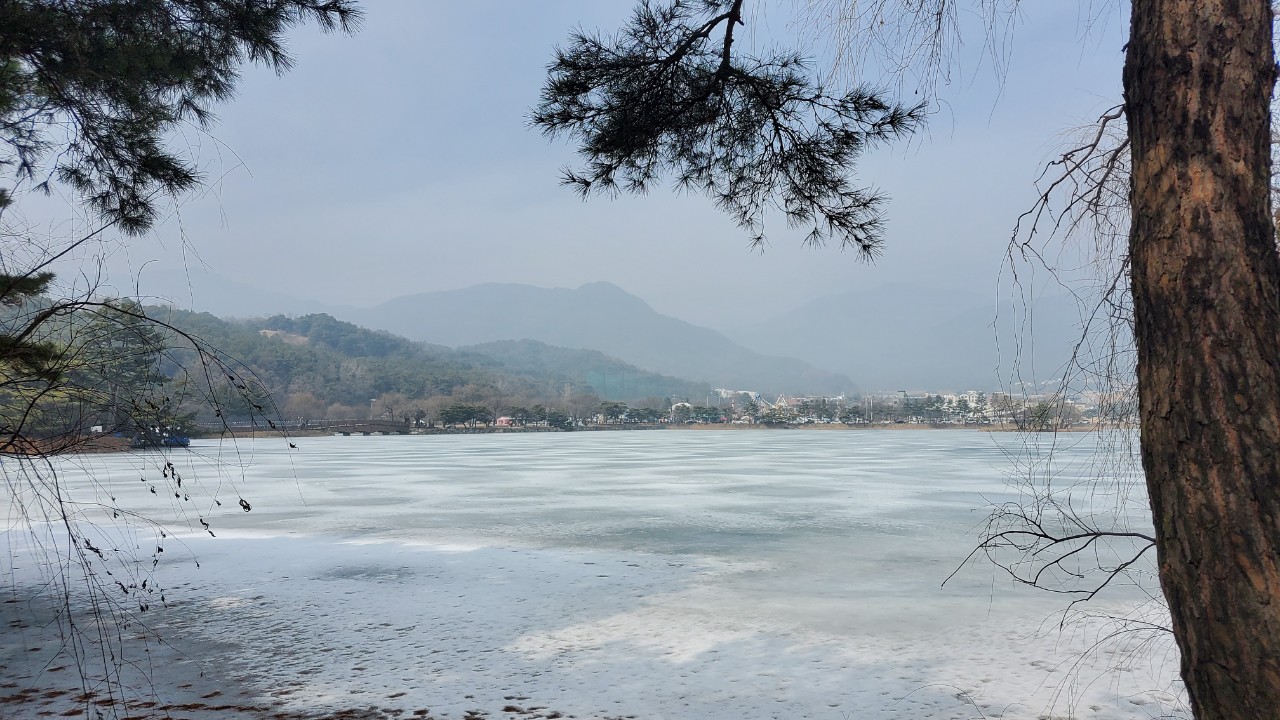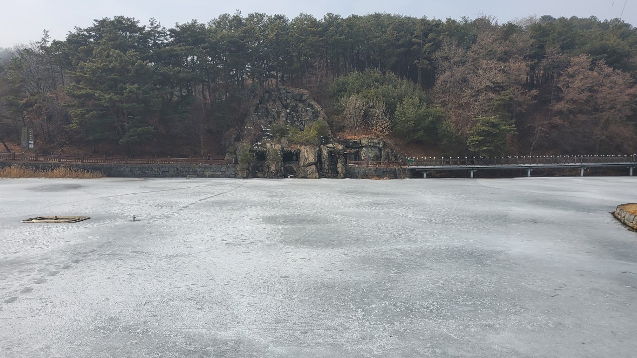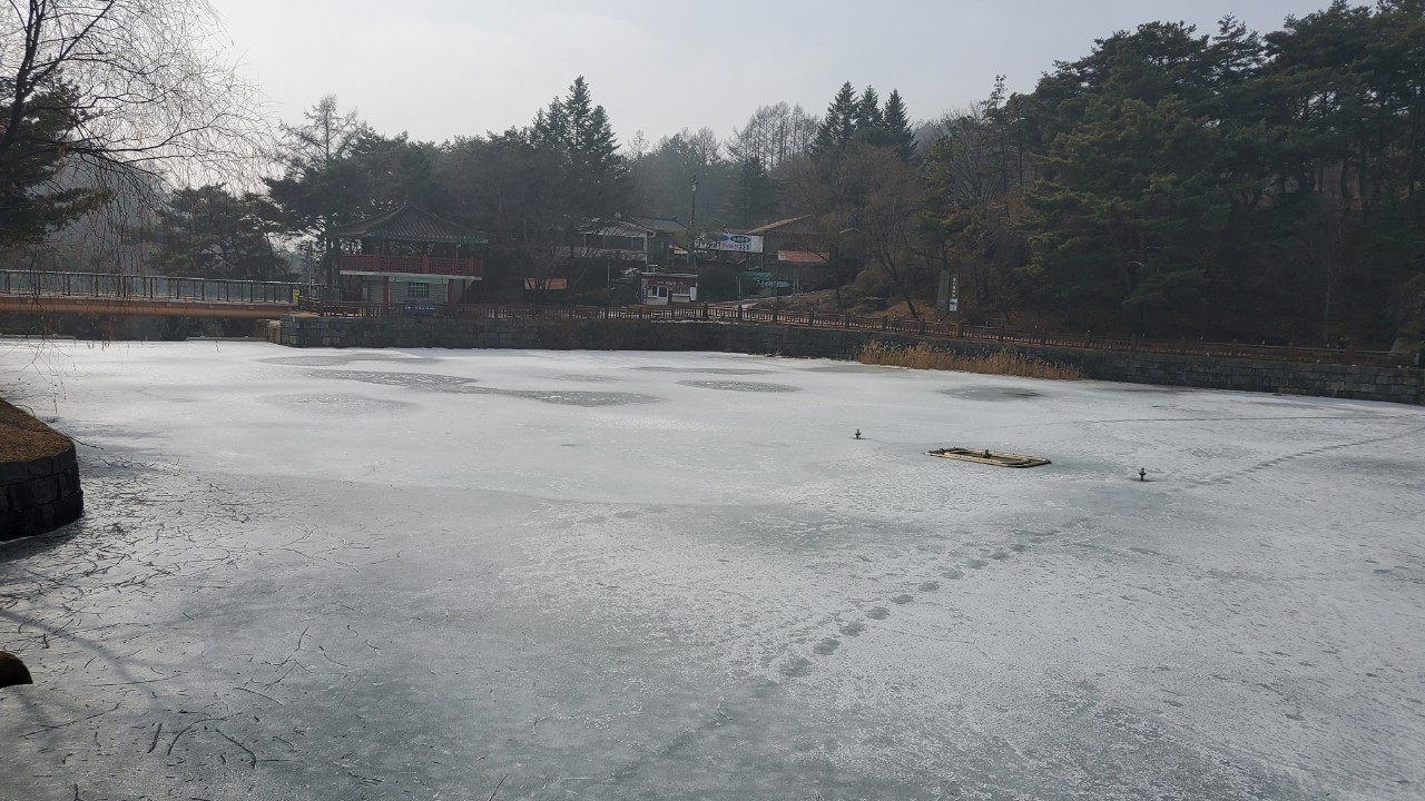 아직 의림지에는 얼음이 녹지 않아 있더군요