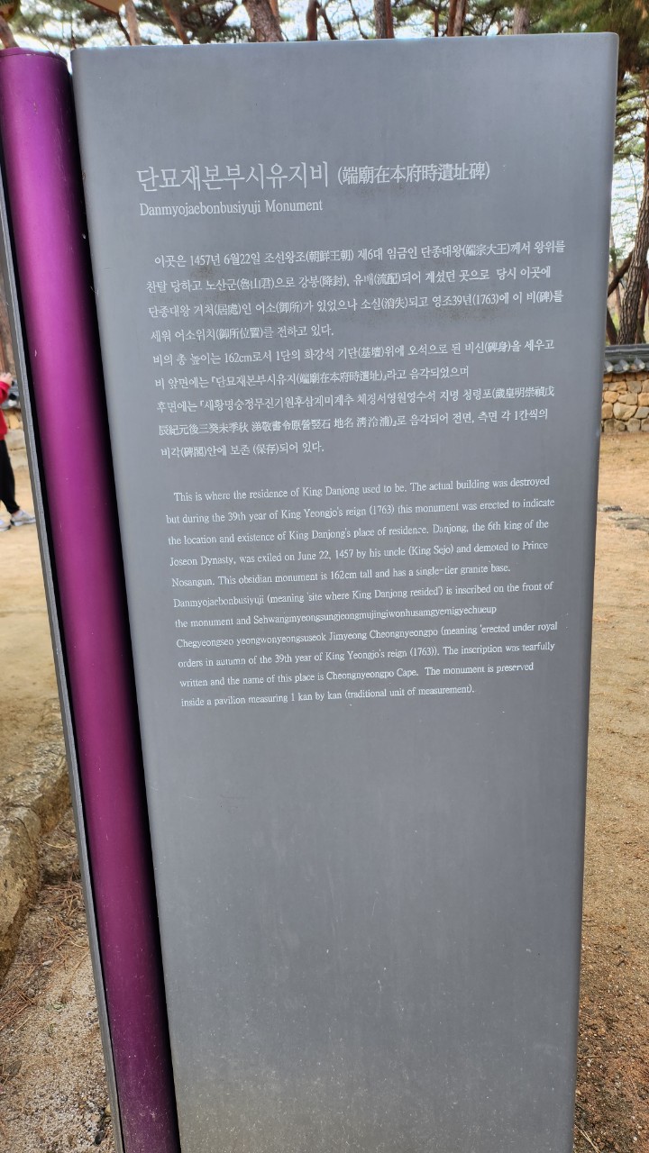 청령포가 잠기자 영월 장릉 으로 유배지를 옮겨 지내다