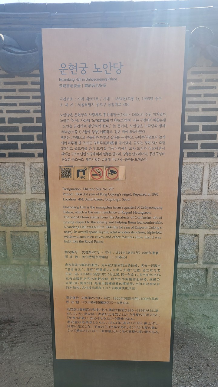 흥선대원군은 생활공간인 사랑채 노안당과 안채 노락당을 지었다.